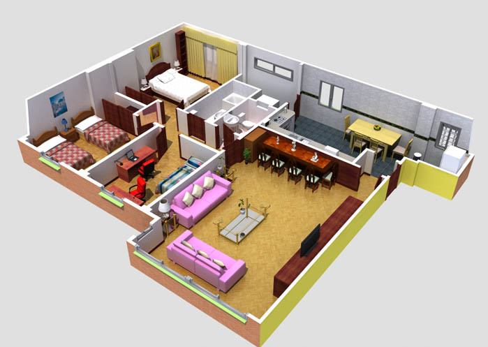 PLANO DE CASA 3D CON TRES DORMITORIOS : PLANOS DE CASAS GRATIS Y ... 😈
