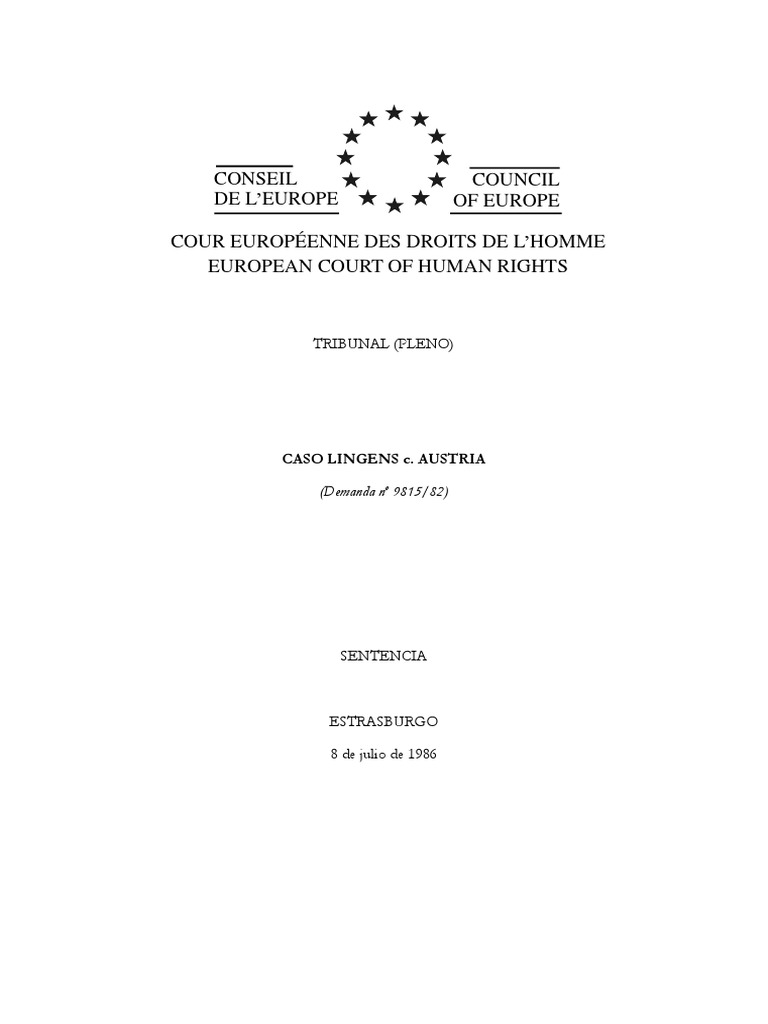 Lingens c. Austria.pdf | Convenio europeo de derechos ... 😈