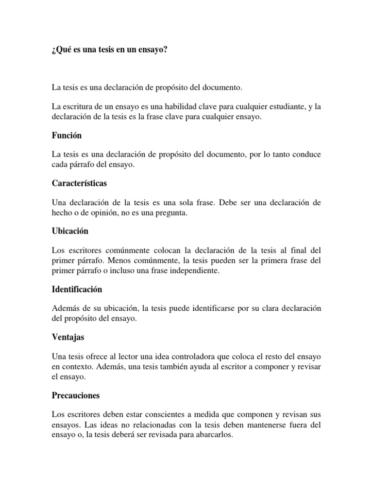 Qué es una tesis en un ensayo.docx | Ensayos | Lectura ... 😈