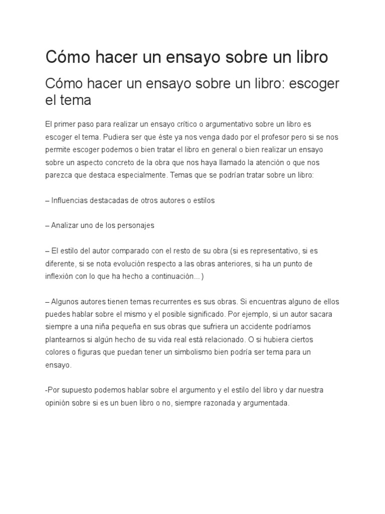 Cómo Hacer Un Ensayo Sobre Un Libro | Ensayos | Autor 😈