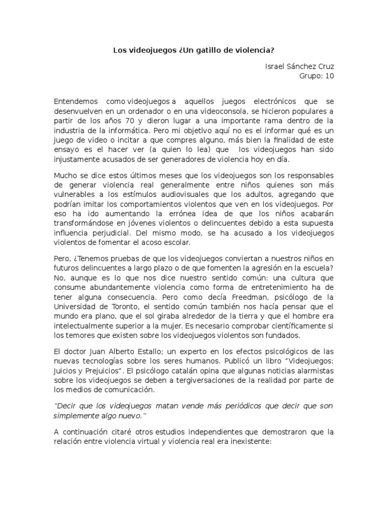 Ensayo Sobre Los Videojuegos | Videojuegos | Ciencia general 😈