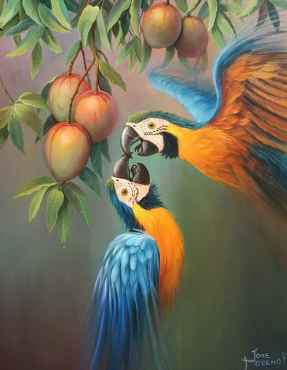 Imágenes Arte Pinturas: Cuadros de loros, sandias y mangos 😈