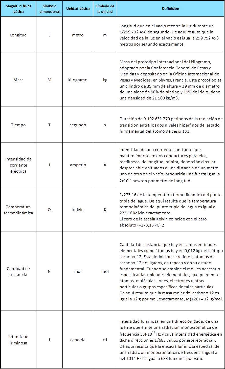 elabora una tabla de magnitudes del sistema internacional. incluye en ... 😈