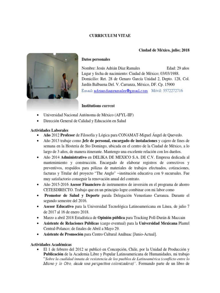 Curriculum Vitae 2018 Jesús Adrían Díaz R | Ciudad de México | México 😈