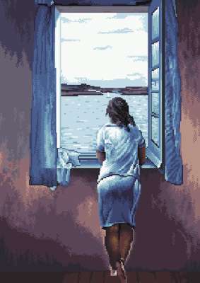 Muchacha en ventana Dali | Kit de punto de cruz, Punto de ... 😈