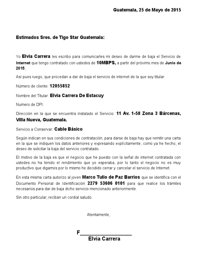 Modelo De Carta Para Dar De Baja Un Servicio 😈