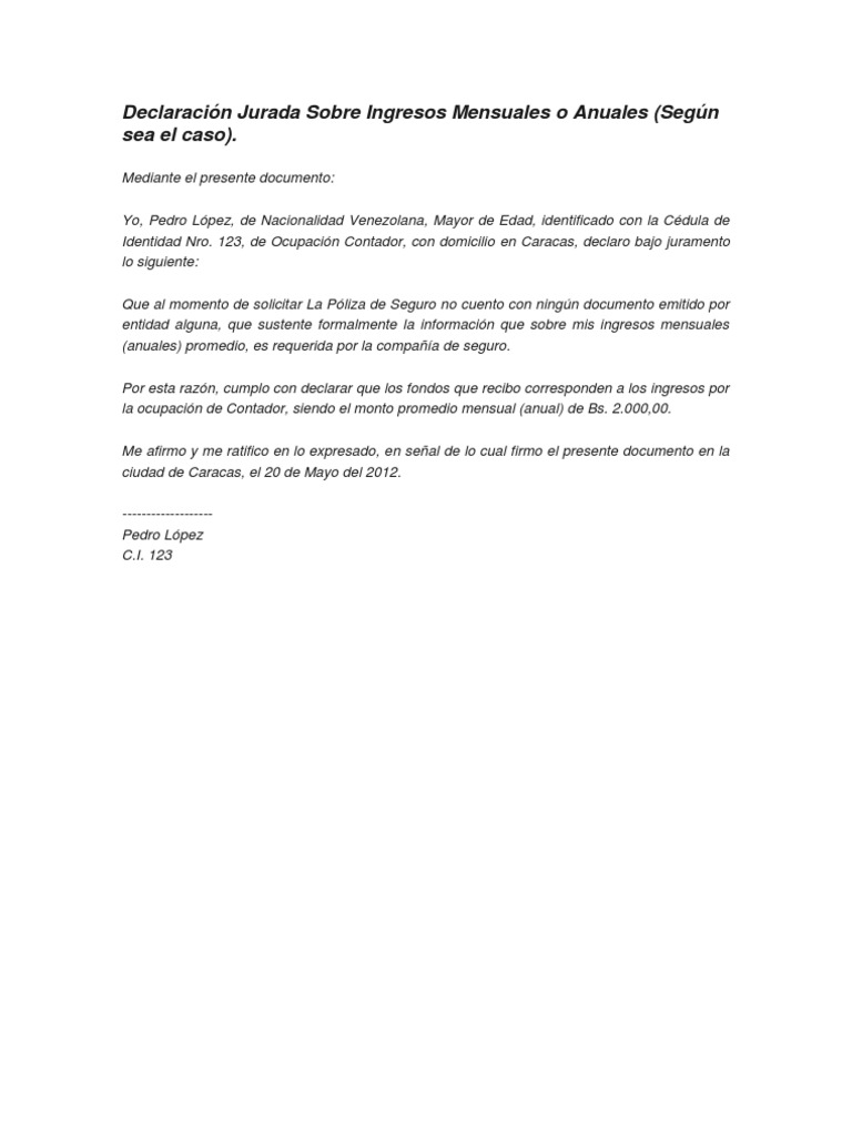 Modelo de declaración jurada de ingresos | Declaración jurada 😈