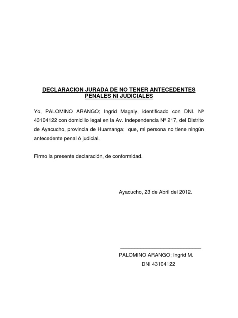 Declaracion Jurada de No Tener Antecedentes Penales Ni ... 😈