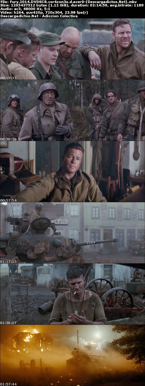 Fury Corazones de Hierro 2014 DVDRip 720p Latino Identi 😈