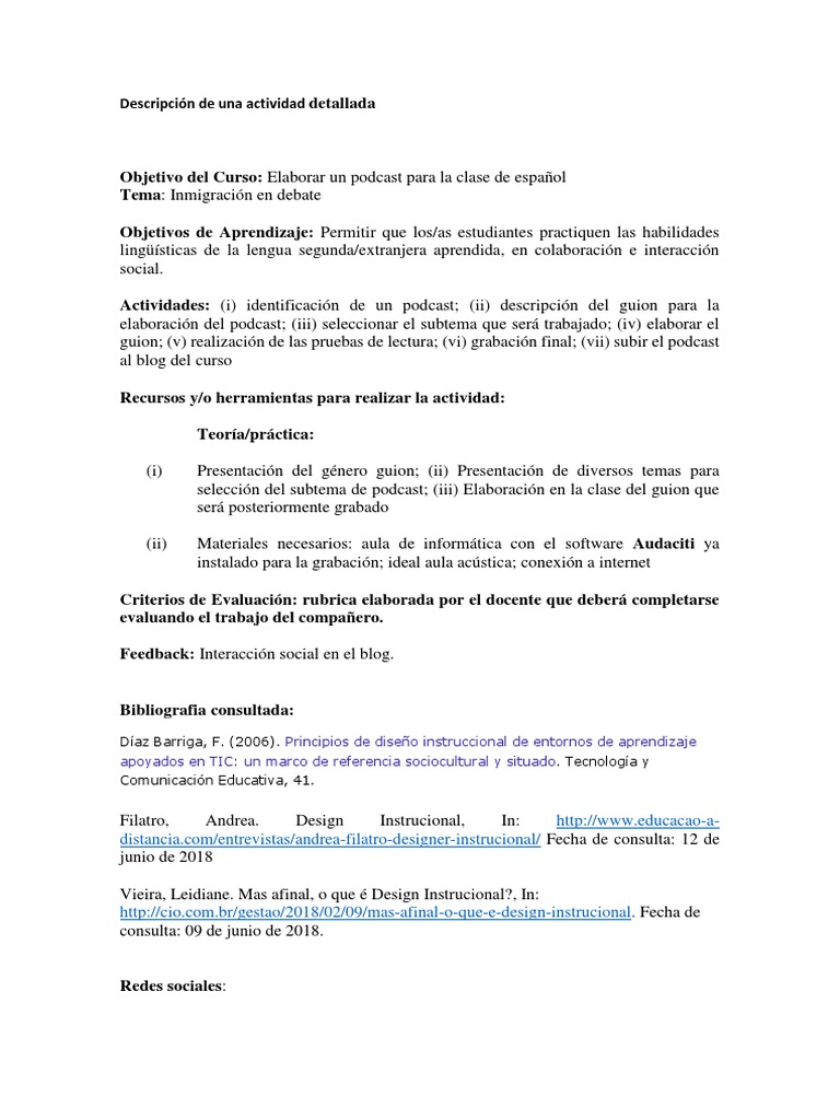 Descripción de Una Actividad Detallada 😈