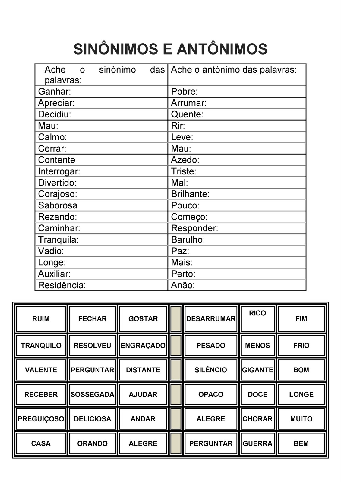 AMIGA DA EDUCAÇÃO.: ATIVIDADES COM SINÔNIMO E ANTÔNIMO ... 😈