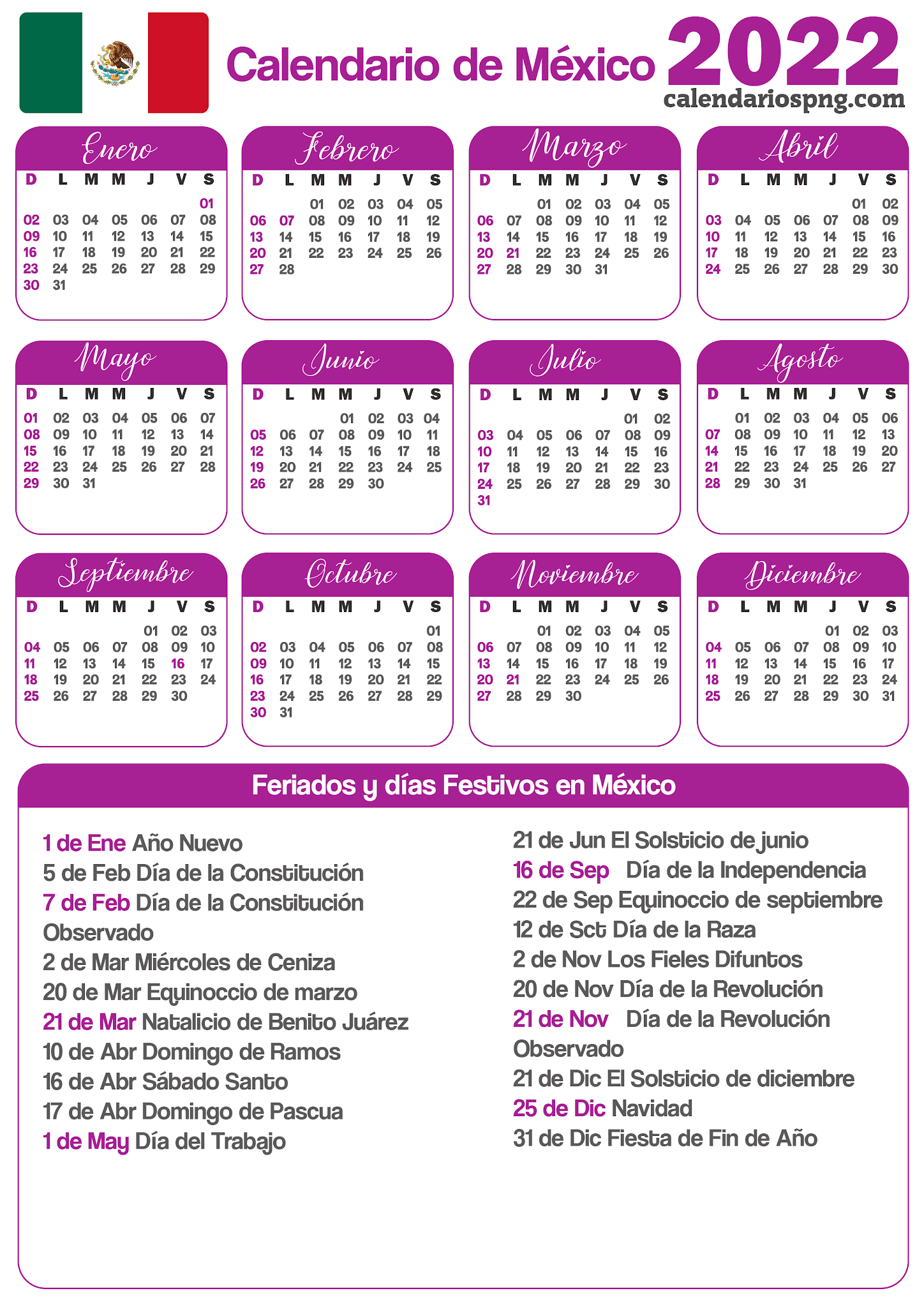 Calendario 2022 Mexico Con Días Festivos Para Imprimir 😈