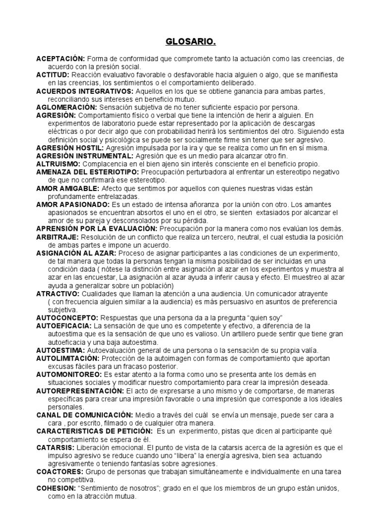 Glosario Psicologia Social | PDF | Comportamiento | Percepción 😈