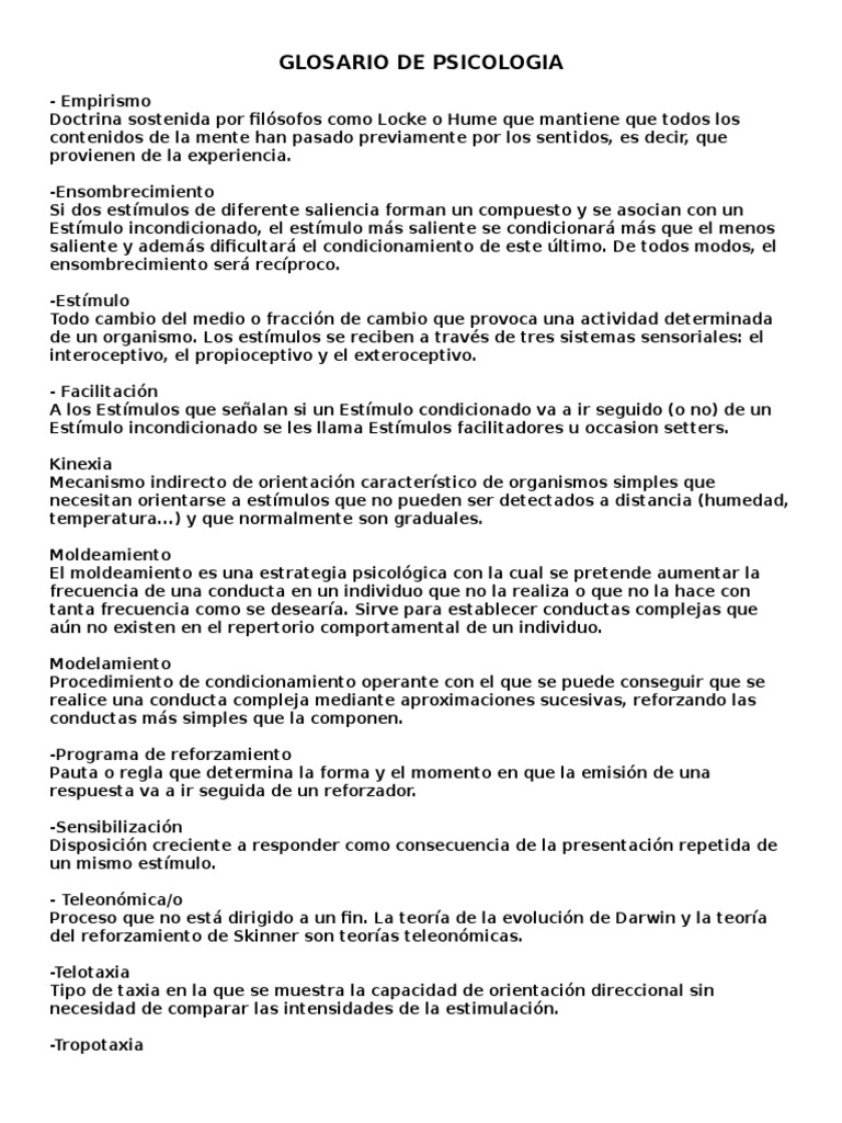 Glosario de Psicologia | PDF | Comportamiento | Sicología 😈