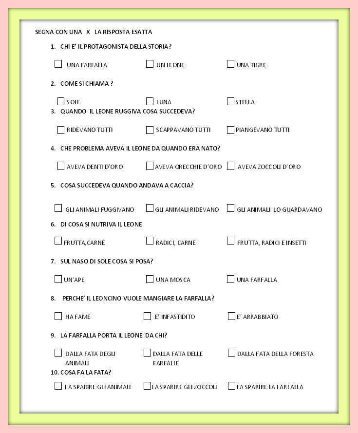 La scuola in cartella: Comprensione del testo: GLI ZOCCOLI D ORO DEL LEONE π
