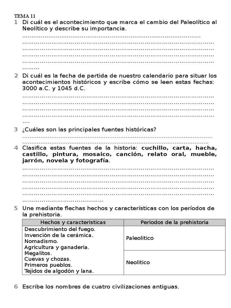 Tema La Prehistoria y La Edad Antigua | Cartago antigua | Neolítico 😈