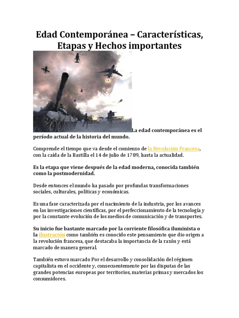 10 características de la Edad Contemporánea RESUMEN corto!! 😈