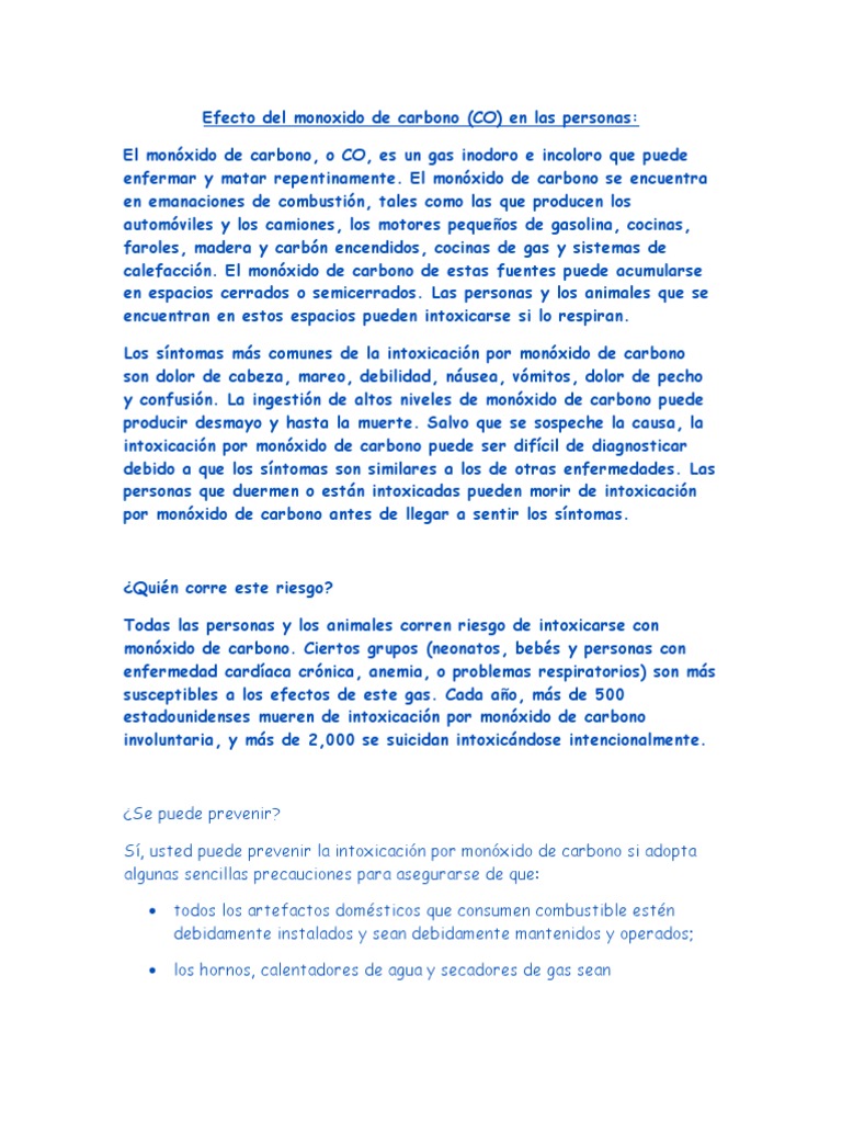 JUNTOS POR EL PLANETA: Efectos del Monoxido de Carbono en ... 😈