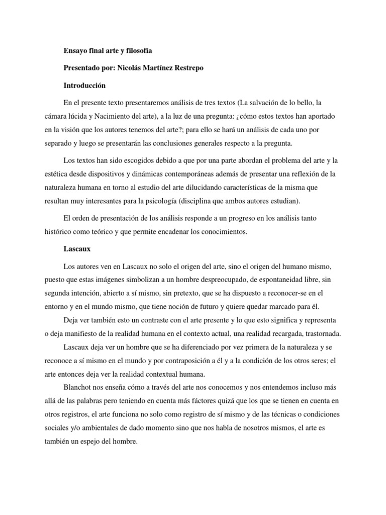 Ensayo relación arte y filosofía | Estética | Homo Sapiens 😈