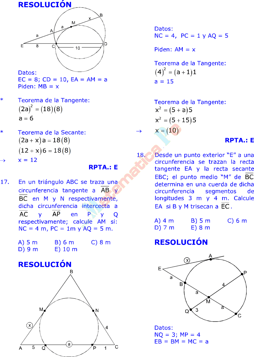 RELACIONES MÉTRICAS EN LA CIRCUNFERENCIA EJERCICIOS RESUELTOS DE ... 😈