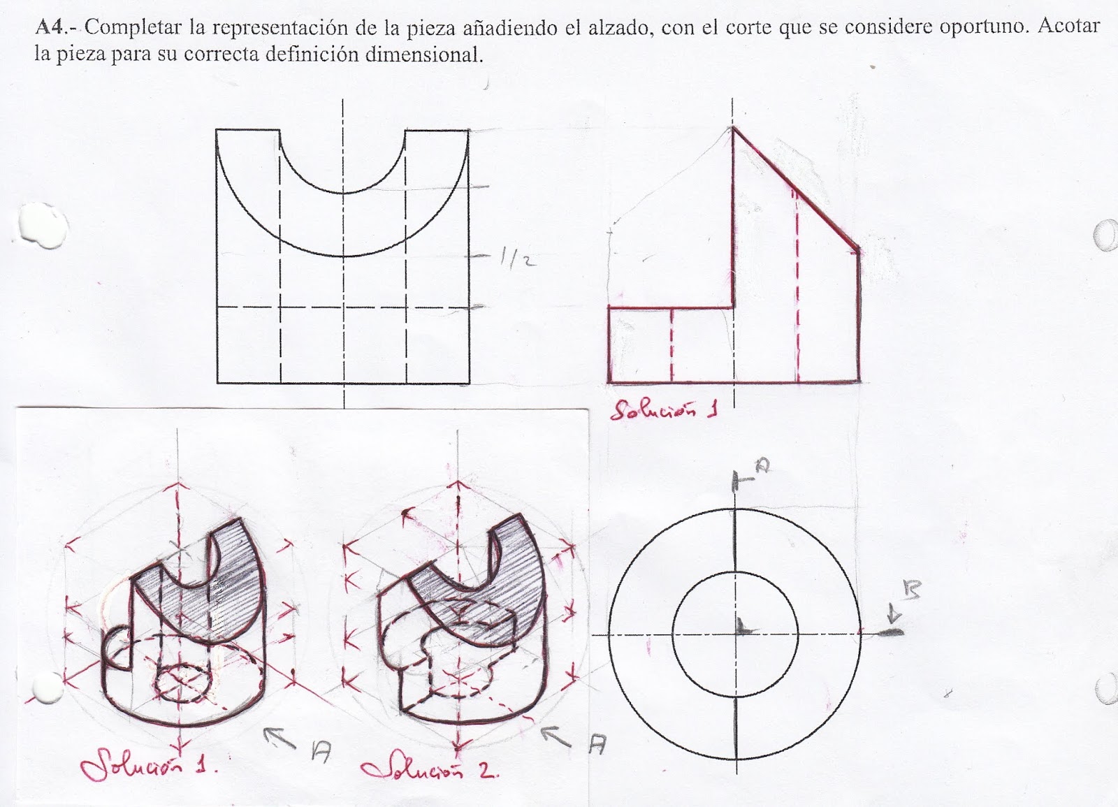 Dibujo técnico arriba: 1DT 2DT: EVAU, PIEZA XIII, sección al cuarto y ... 😈