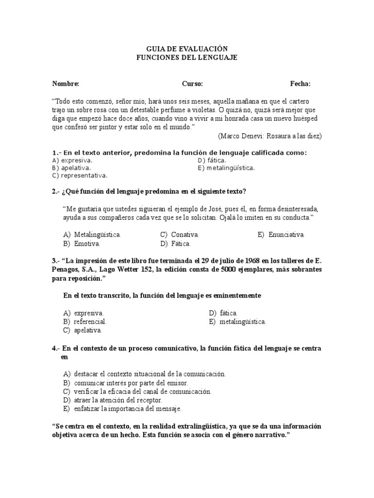 Guía de Ejercicios Factores y Funciones Del Lenguaje | PDF ... 😈