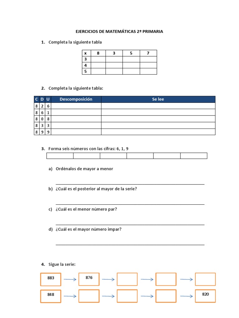 EJERCICIOS DE MATEMÁTICAS 2º PRIMARIA 😈
