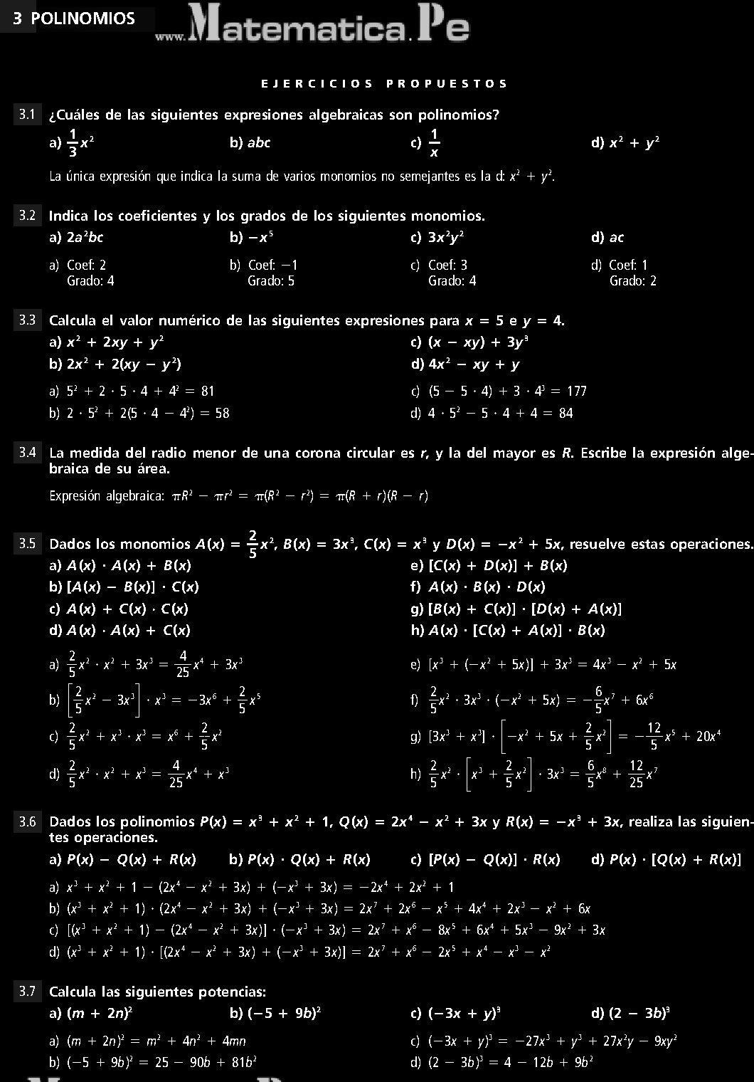 POLINOMIOS EJERCICIOS RESUELTOS DE SECUNDARIA–MATEMATICA 4 ... 😈