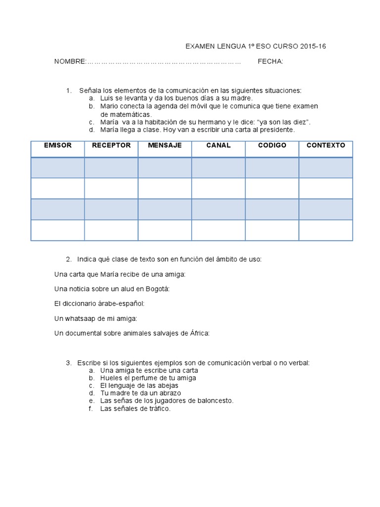 Examen ejemplo de lengua castellana y literatura 1º eso ... 😈