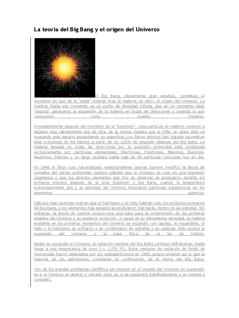 La teoria del Big Bang y el origen del Universo.docx | Big ... 😈