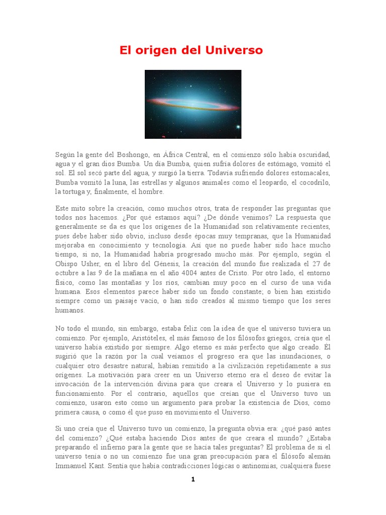 Ensayo sobre el origen del universo pdf 😈