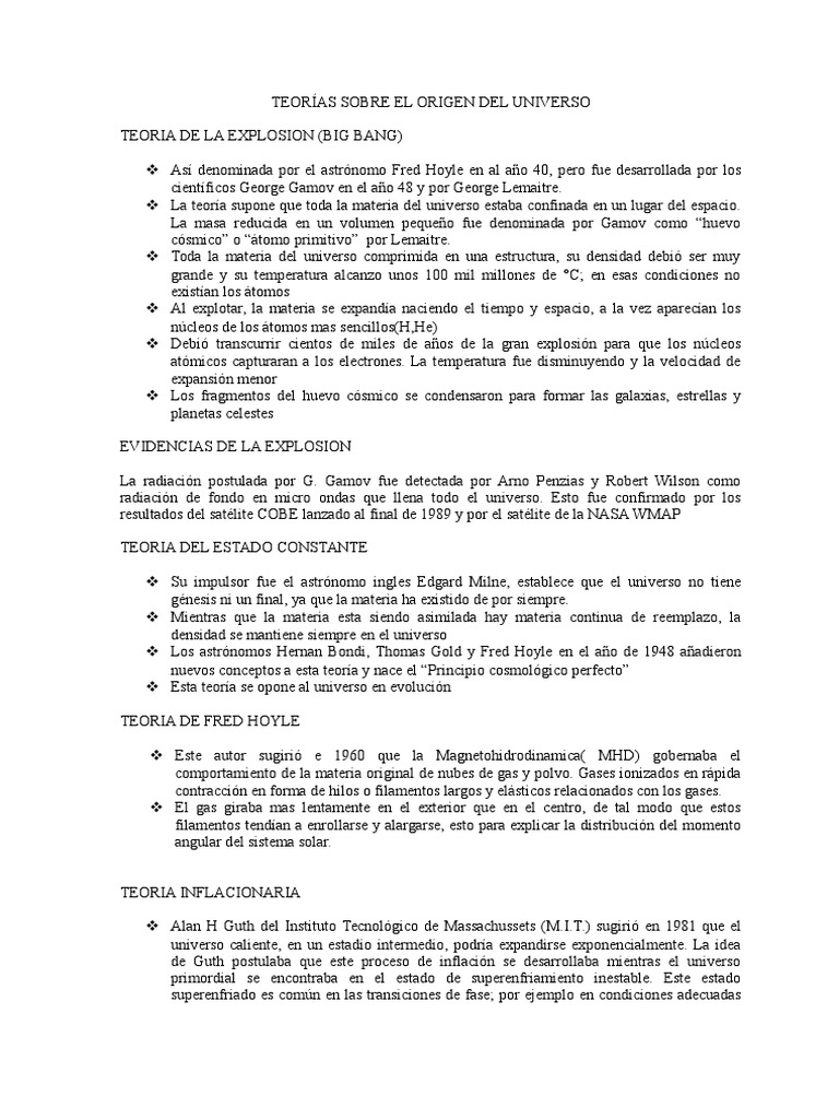 PDF Teorias sobre el origen del universo Temas de Fisica ... 😈