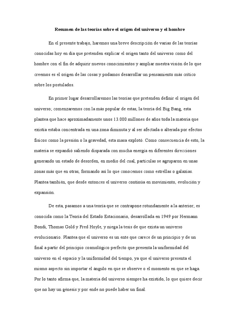 El Origen Del Universo Resumen Historia Medicina | Homo ... 😈