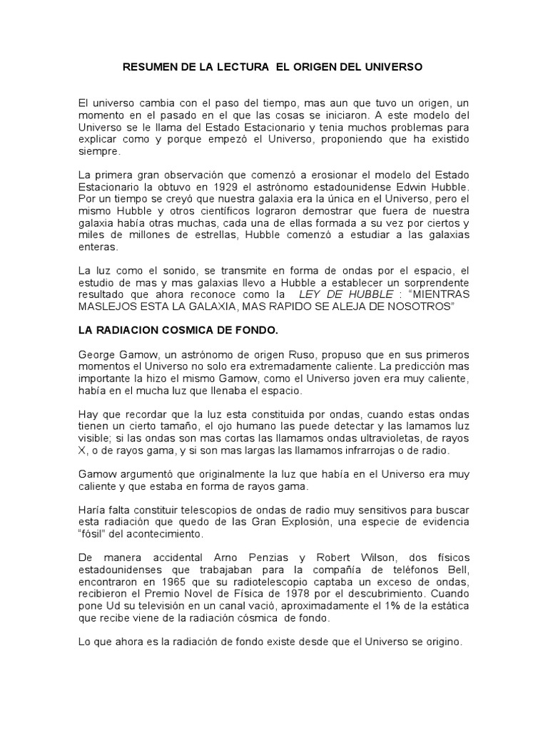 Resumen de La Lectura El Origen Del Universo | Universo ... 😈