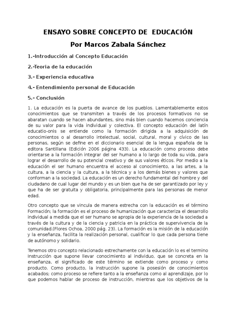 Ensayo Sobre Concepto de Educacion | Aprendizaje ... 😈