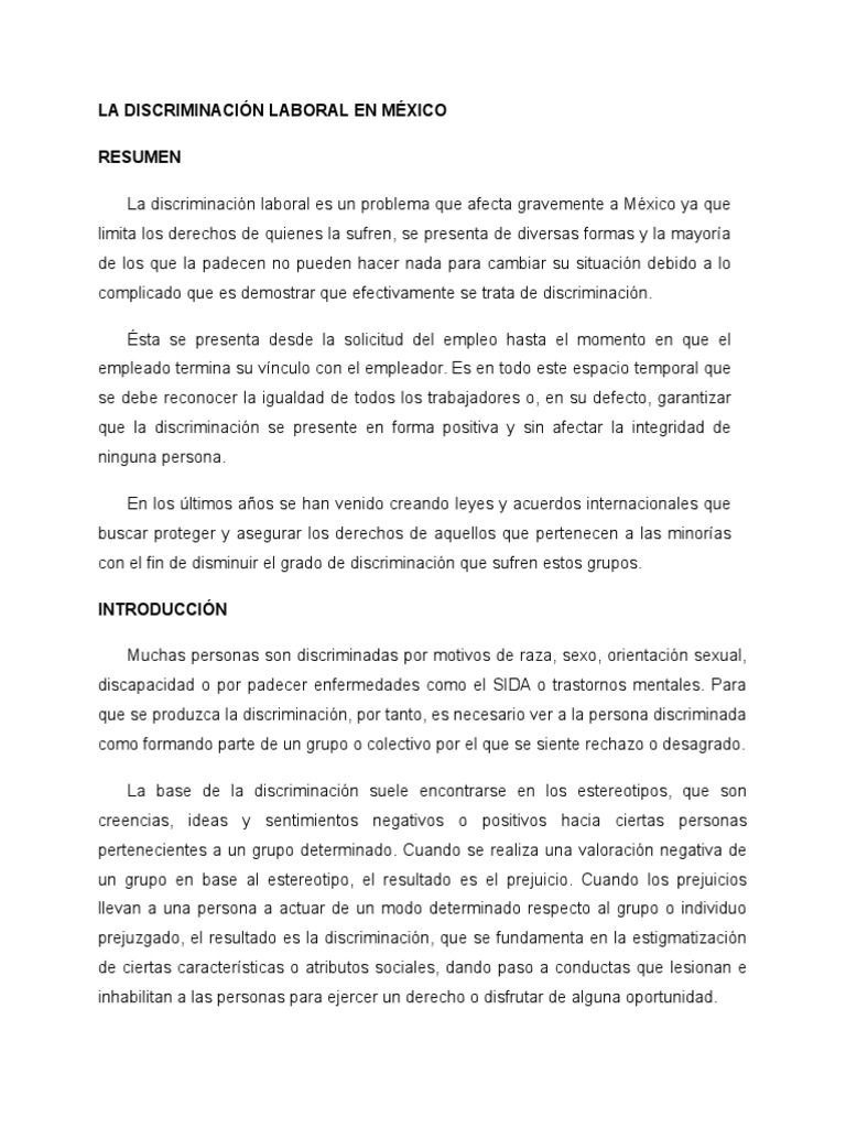 Ensayo Discriminacion Laboral en Mexico 😈