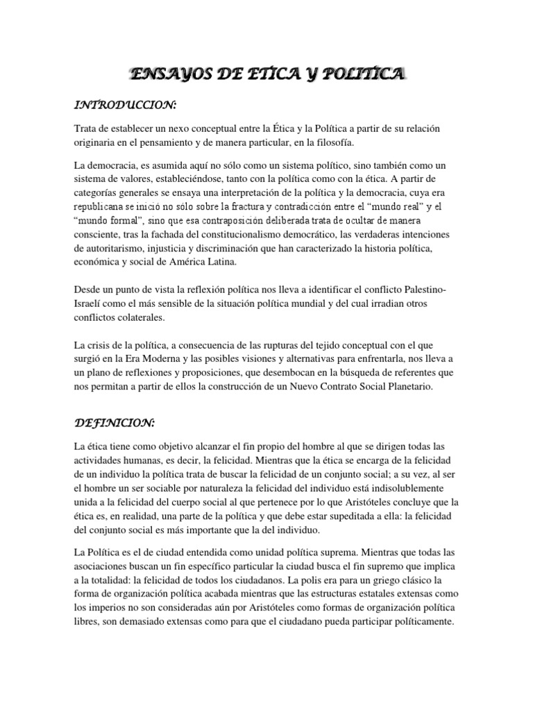 Ensayos de Etica y Politica | Bien común | Política 😈