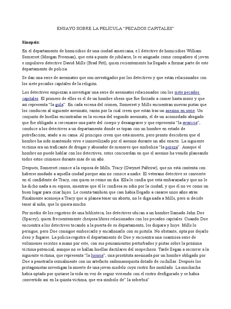 Ensayo Sobre La Película Seven | Violencia | Ocio 😈