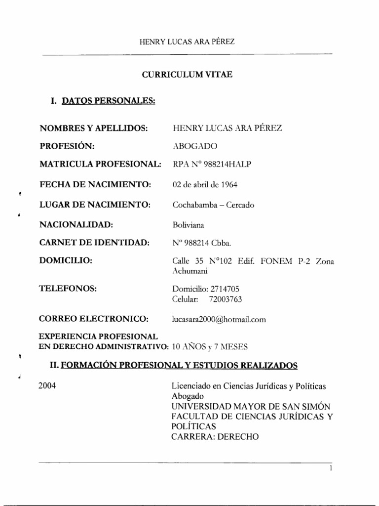 Ejemplo de Hoja de Vida Bolivia en Word Descarga Gratis 馃槇