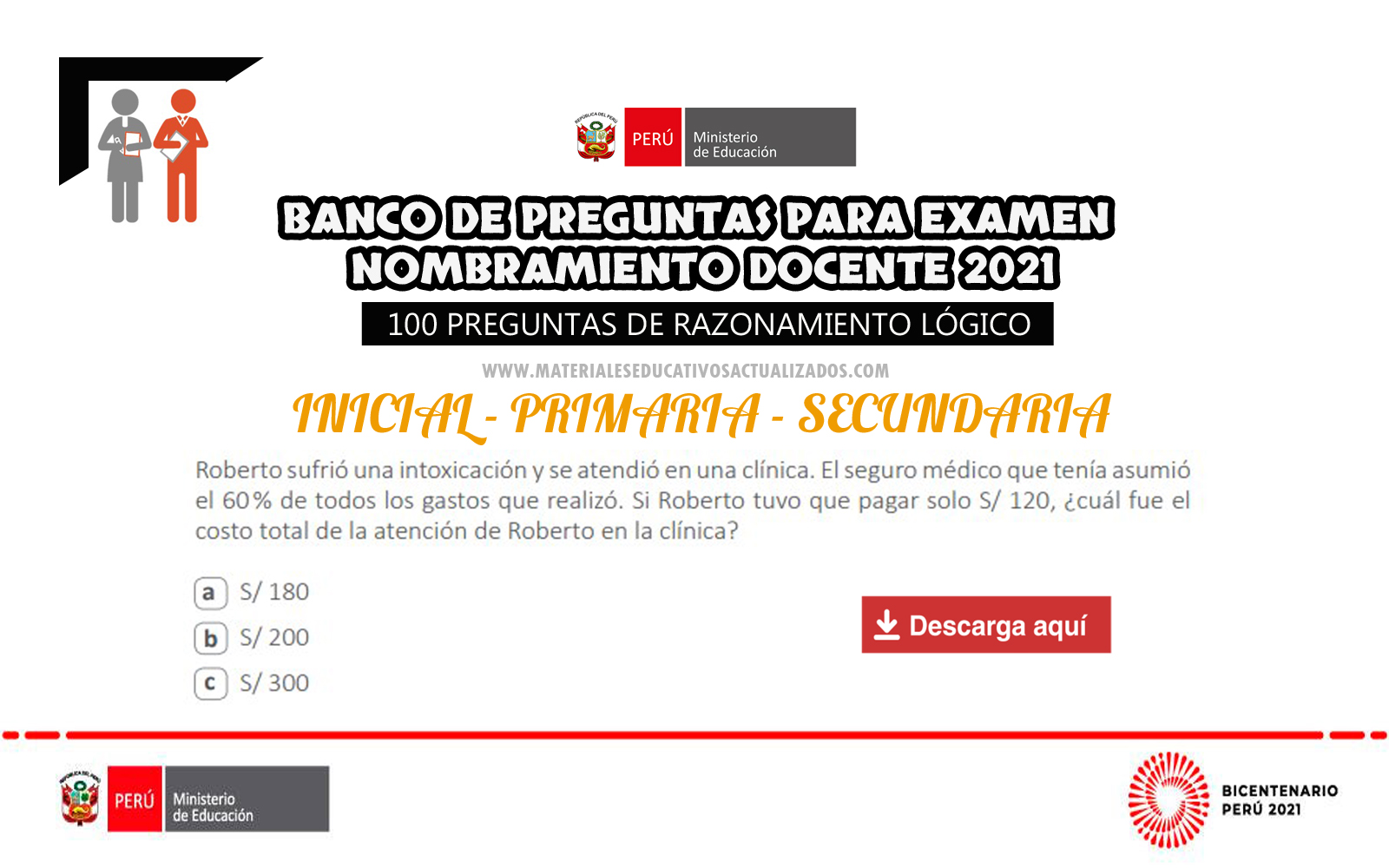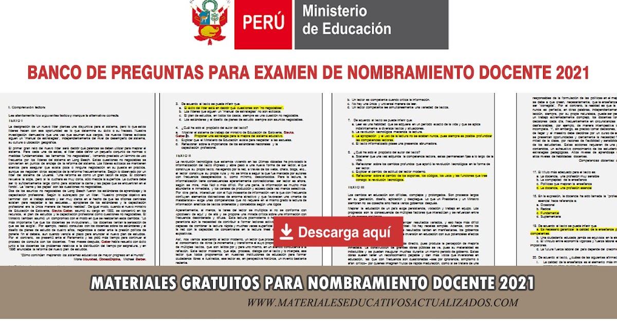 Banco de Preguntas para Examen Nombramiento Docente 2021 ~ Materiales ... 😈
