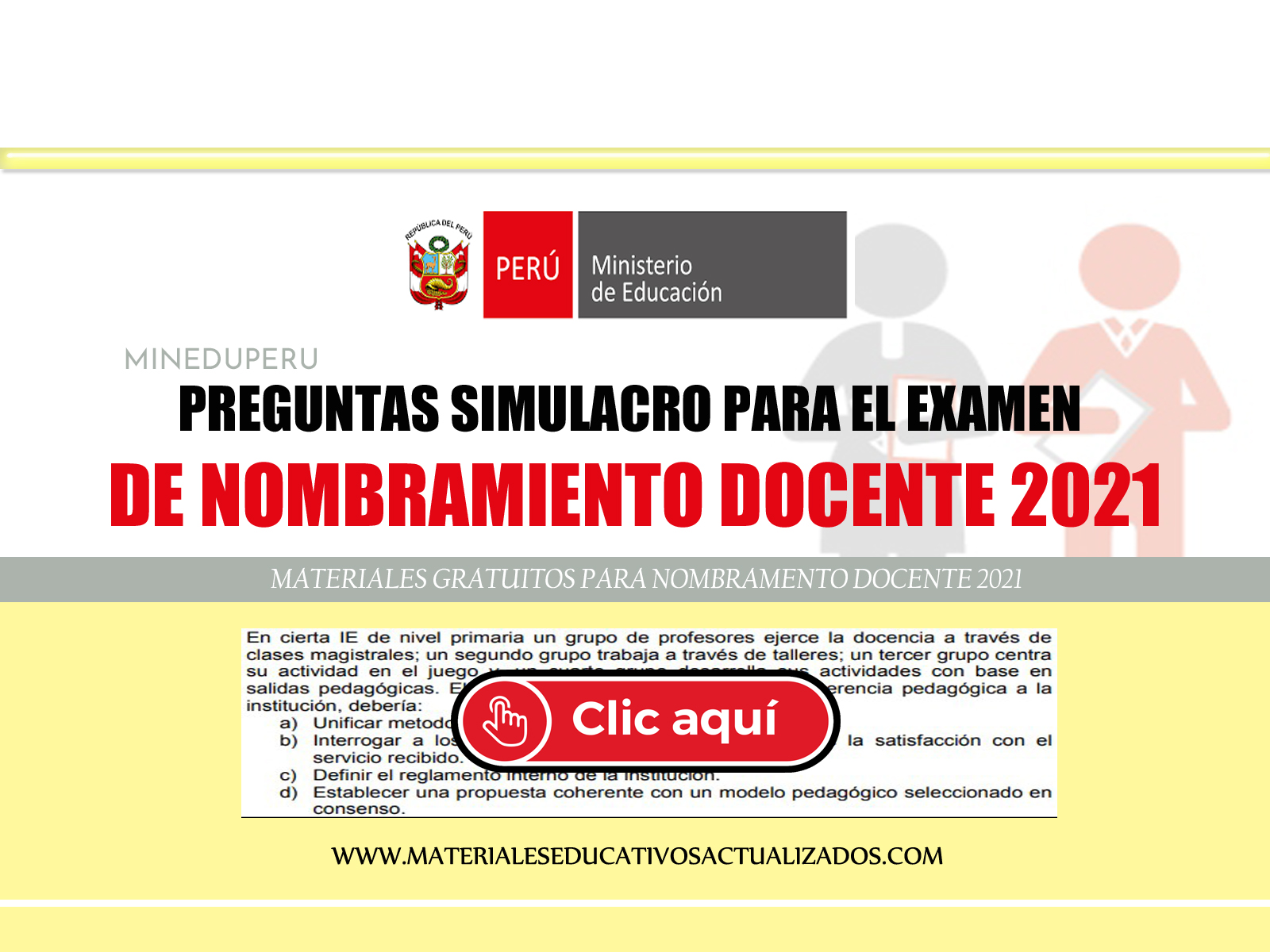 I Simulacro de Examen Nombramiento Docente 2021para Inicial, Primaria y ... 😈