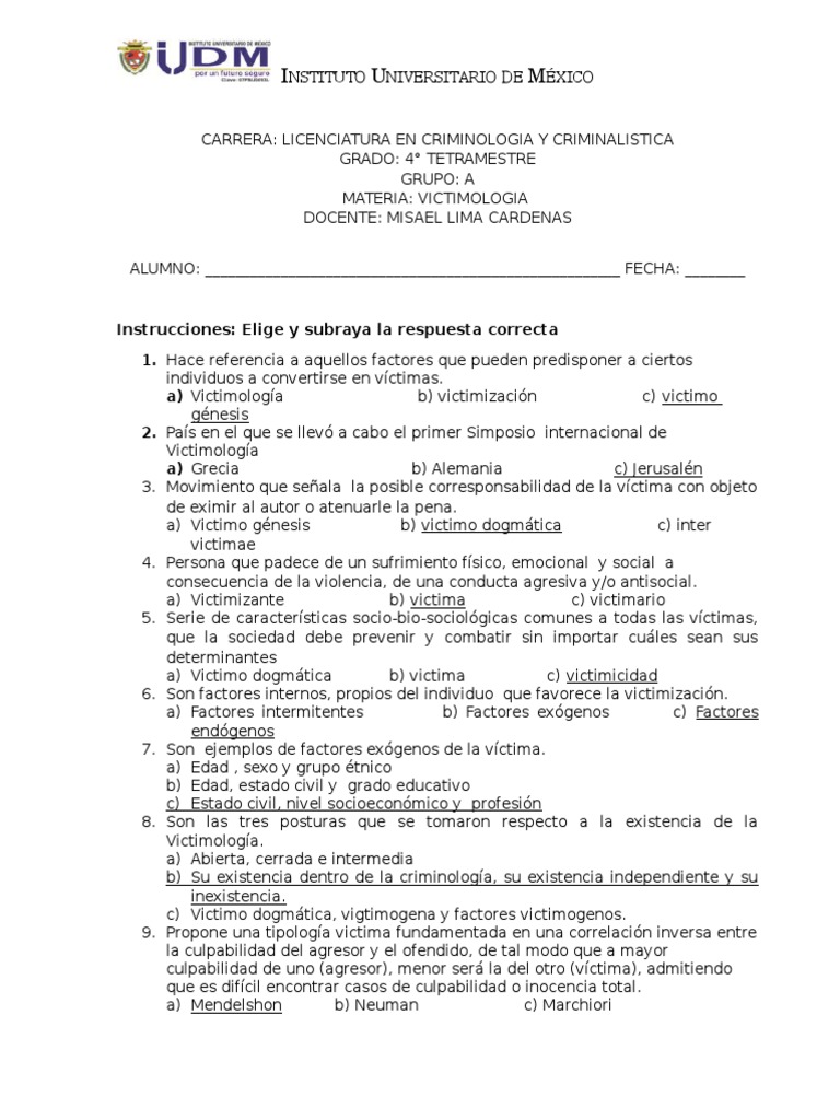 1° Examen Parcial VICTIMOLOGIA PREGUNTAS Escolarizado RESPUESTAS | PDF ... 😈