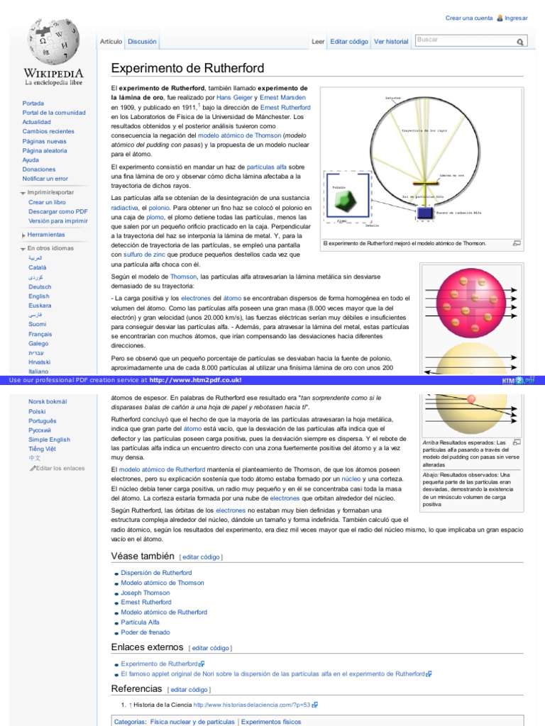 Experimento de Rutherford Wikipedia, la enciclopedia libre 😈