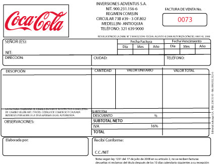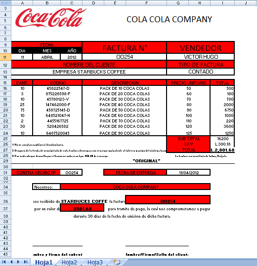 Informatica 2ºRH: FACTURA TRABAJO EN CLASE COCA COLA 😈