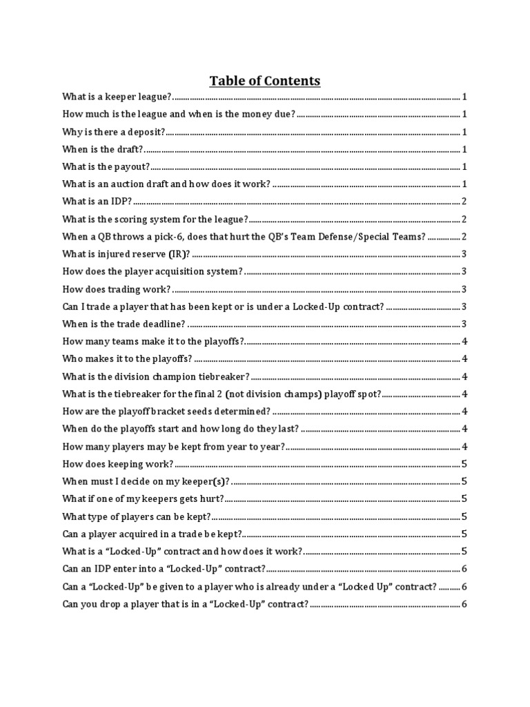 Fantasy Football Keeper League Constitution Frequently ... π