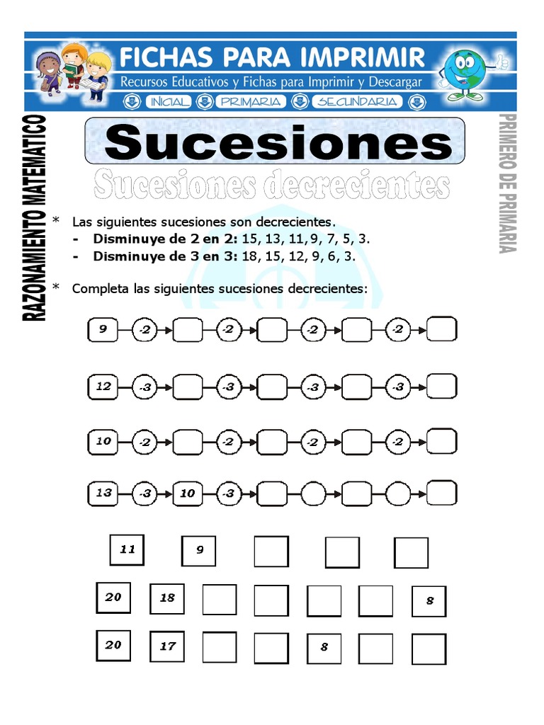 Ficha de Sucesiones para Primero de Primaria 😈