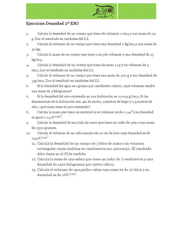 Ejercicios Densidad 2º ESO 😈