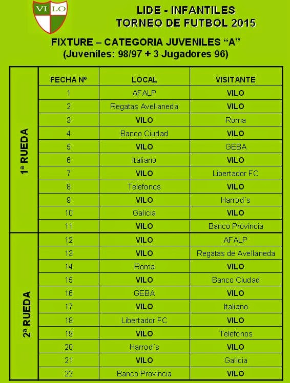 VILO FUTBOL: JUVENILES FIXTURE TORNEO LIDE 2015 😈