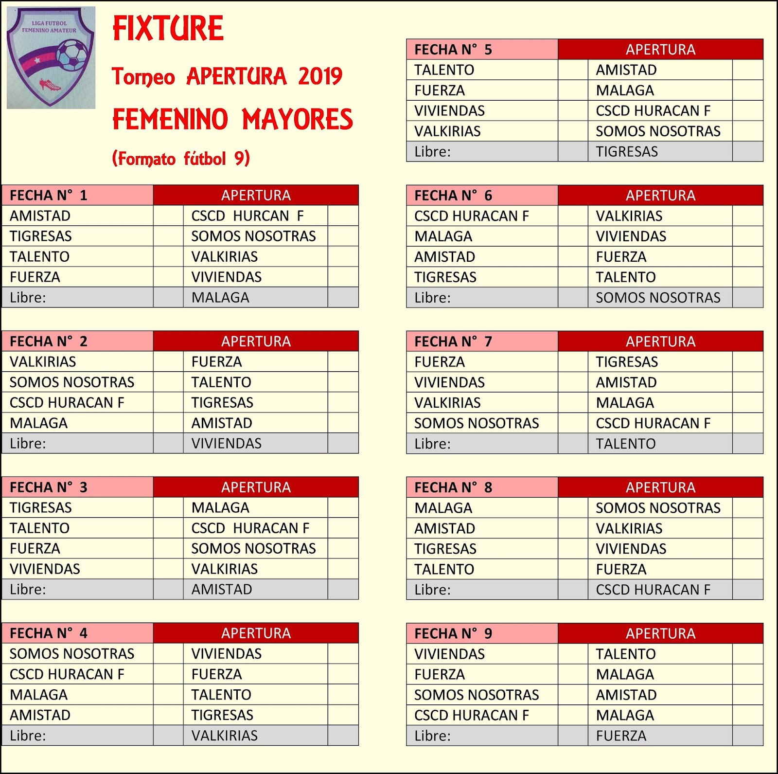 #Fixture FEMENINO JUVENILES E INFANTILES T. APERTURA 2023 Liga ... 😈