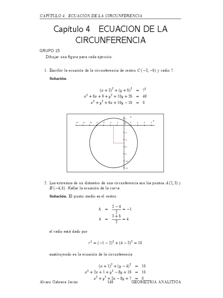 ECUACION DE LA CIRCUNFERENCIA PROBLEMAS RESUELTOS PDF 😈